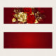 La composición de dos rosas rojas pintadas artistalmente y un rosa dorado, decorado con oro, hojas de joyas sobre fondo texturado.