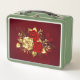 La composición de dos rosas rojas pintadas artistalmente y un rosa dorado, decorado con oro, hojas de joyas sobre fondo texturado.