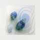 Una interesante vista retrato de tres conchas marinas de fondo azul y blanco con temática de remolinos. Es sólo un recordatorio del océano y sus maravillosos tesoros.
