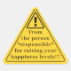 Añade un toque divertido a tus regalos o sobres con esta pegatina de “señal de advertencia” de color amarillo brillante. Con forma de triángulo de precaución, dice “De la persona responsable de aumentar tus niveles de felicidad” — perfecta para sellar regalos sorpresa, sobres con dinero o entradas, o simplemente añadir un toque descarado a cualquier paquete. Divertida, ligera y segura de hacer sonreír a cualquiera antes de abrir el regalo.