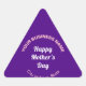 ¡Feliz Día de la Madre! Festividad para celebrar la maternidad. Triángulo forma pegatina con Feliz Día de la Madre, su nombre de negocio, ciudad o ciudad y estado. Puede utilizarlo como accesorio de su material de embalaje de producto para promocionar su marca de producto. También puede utilizarlo como material de marketing para promocionar su negocio a clientes o clientes. pegatina de personalizable que puede utilizar para crear conciencia de marca. Los colores de diseño son textos en rosa y blanco sobre fondo morado. Compruebe la apariencia después de escribir textos. Si la apariencia le resulta agradable, puede realizar su pedido ahora. Si necesita cambiar el tamaño y mover los textos para que encajen en este pegatina, cambie la herramienta de diseño. También puede realizar otros cambios en la herramienta de diseño según la apariencia de este pegatina que prefiera, como cambiar el color de fondo, el color del tipo de letra y el estilo del tipo de letra. ¡Feliz Día de la Madre! Te deseo más ventas esta fiesta.