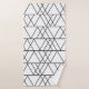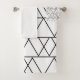 Este conjunto de toallas presenta un diseño moderno de mediados de siglo de triángulos blancos superpuestos, fabricados con líneas negras que se dirigen horizontalmente.