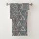 Este conjunto de toallas tiene un diseño escandinavo de triángulos separados en tres lugares y otros tres anidados en varios colores.