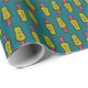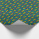 Un rollo de elegante Giftwrap, con una decoración "tribal" en rojo brillante, amarillo-verde y negro, sobre un fondo Verde azulado. Parte de la colección "Tambores de la jungla" de Pintorly y Pintorly.