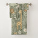 Featuring a captivating 'Tribal Safari Jungle' pattern, this pattern showcases friendly, stylized safari animals—including the lion, giraffe, zebra, and elephant—nestled among whimsical foliage in muted, olive-green tones. This soft, towel set is perfect for snuggling after a bath while adding a delightful layer of safari decor to your child's bathroom. Search ID1260 to see other products with this cute safari pattern. Note: design adapted from generative content.