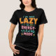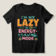 Este humorístico y elegante diseño de camisetas muestra el lúgubre lema "No soy perezoso, estoy en modo de ahorro de energía" en audaz tipografía de inspiración retro. La paleta de colores es vibrante, verde azulada, naranja y rosa, con un toque moderno y un efecto de sombra 3D. Perfecto para el desgaste casual y un gran comienzo de conversación para los amantes de la moda original e ingeniosa. Ideal para regalar o añadir a tu colección personal.