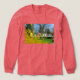 Esta camiseta muestra una hilera de casas de pájaros coloridas disfrutando del sol de primavera. Un bosque amarillo, árboles, cielo azul y hierba verde rodean la hilera de casas de aves únicas.