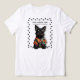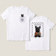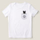 Un lindo schnauzer negro en miniatura asoma a un bolsillo falso en la parte delantera de esta camiseta y un diseño completo en la parte trasera está rodeado de huellas de pata blanca, divertido para tu negocio y empleados.