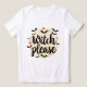 Prepárate para echarte unas risas con esta divertida camiseta de Halloween "Witch Please" que presenta una tipografía moderna con letras a mano, acompañada de sutiles murciélagos y calabazas espeluznantes. Este diseño sencillo y llamativo en tonos negros y naranjas es perfecto para una divertida apariencia de Halloween, moderna y atemporal.