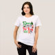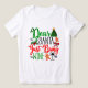 Esta alegre camiseta de Navidades presenta un diseño lúdico con un texto vibrante que dice Querido Papá Noel, Just Bring Wine, rodeado de gráficos extravagantes que incluyen un árbol de Navidad, hojas huecas, hombres de pan de jengibre y una copa de vino.