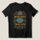 ¡Mejora tu ropa casual con esta llamativa camiseta gráfica "Mute First, Think Later"! Hecha de suave algodón negro, esta camiseta presenta un diseño vibrante y colorido con un mensaje divertido y reflexivo. En el centro hay una cara tranquila y meditativa con una tirita sobre la boca, rodeada de intrincados elementos florales y de estilo paisley en tonos naranja, azul verdoso y rojo.