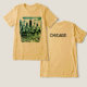Camiseta gráfica con el perfil de Chicago Illinois. Negro con colores azul y verde. La silueta de Chicago está en la parte delantera de esta camiseta tricamilla. La espalda tiene "CHICAGO". Utilice la plantilla para cambiar el texto de la parte posterior o salir tal cual. Gran camiseta para hombres, mujeres y niños.