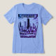Camiseta gráfica con el perfil de Chicago Illinois. Color negro y violeta. La parte delantera de la camiseta tricolaminada tiene el horizonte de Chicago. Personalizar la parte posterior con su nombre o texto. Utilice la plantilla para crear su propia camiseta gráfica personalizado. Gran camiseta para hombres, mujeres y niños.