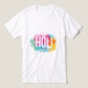 Celebra el Festival de Colores con este impresionante diseño de alta energía. Con un audaz texto "Holi" sobre una explosión de polvos de azul eléctrico, magenta y naranja intenso, esta camiseta captura el espíritu de alegría y renovación. Perfecta para fiestas de Holi, eventos comunitarios o para agregar un toque de estilo artístico a tu guardarropa diario.