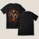 Un atrevido tee oscuro con un llamativo anillo de miembro y un guerrero blindado—construido para destacar sobre ropa negra.