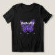 "Abraza la elegancia con nuestra camiseta de mariposa morada. El texto blanco sobre una camisa negra elegante le da un toque de gracia y estilo. ¡Perfecto para una moda, un vistazo destacado!"