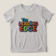 El ilustracion digital de la camiseta "Leading Edge" presenta una tipografía divertida y vibrante que capta una vibración positiva, enfatizando la idea de estar a la vanguardia de la innovación y la creatividad. El frente muestra la frase "Leading Edge" en letras audaces y coloridas, mientras que el reverso ofrece la palabra "Forefront", incorporando diseños dinámicos que evocan un sentido de movimiento e inspiración.