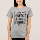 Este diseño de camisetas muestra orgullosamente la frase "No soy perfecto, soy original" en un audaz y llamativo tipo de letra que exuda confianza e individualidad. La declaración celebra la autenticidad y la singularidad, recordando al usuario y a los que lo rodean que está bien adoptar imperfecciones y destacarse de la multitud. El diseño podría incluir elementos artísticos sutiles, como pinceladas, texturas gruesas o acentos juguetones, para reforzar el mensaje de la originalidad. Perfecto para los que aman expresar su verdadero ser, este tee es una adición elegante y empoderadora a cualquier armario casual, haciendo una declaración sin decir una palabra