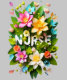 Un acuerdo floral vibrante enmarca la palabra "ENFERMERO", celebrando la compasión y el cuidado de la profesión. Las flores de colores vivos y la vegetación exuberante resaltan el papel esencial que desempeñan las enfermeras.