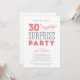 trigésimas invitaciones del cumpleaños de la sorpresa con un diseño del rosa, del gris, y blanco de la diversión. Personalice la fraseología para sus trigésimas necesidades del fiesta de sorpresa.