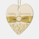 Este ornamento floral en forma de corazón de cerámica del navidad del aniversario de boda de la marfil y del oro trigésimo tiene una cinta y un arco IMPRESOS oro con una marfil y un medallón IMPRESO oro en él. Haría un recuerdo precioso para los pares que celebran 30 años de junto. El texto es adaptable. Si usted necesita la ayuda que lo modifica para requisitos particulares, envíe por correo electrónico por favor niteowlstudio@gmail.com.