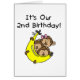 Tres monos pequeños, dos niños y un chica, y un gran plátano amarillo en las camisetas Triplets del segundo cumpleaños, trajes de ropa, bolsas de tote, tarjetas, pegatinas, imanes y mucho más.