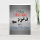 Características del diseño clásicas del navidad una silueta negra de Papá Noel en su trineo que es llevado por su equipo de reno mágico. Por encima y por debajo de Santa y del reno es el texto en escritura y fuente estándar en negro, rojo y el azul que dice las Felices Navidad y una Feliz Año Nuevo todas en un fondo coloreado plata de la pendiente. El interior de esta tarjeta de Navidad preciosa tiene texto adaptable en la fuente negra y roja donde usted puede hacerle sus los propios y muestra con su nombre o el apellido. ¡Esto es un gran diseño para enviar sus saludos del navidad a los amigos, a la familia, a los compañeros de trabajo o a los empleados!