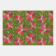 Encantador papel de envoltura floral de invierno verde y rosado que incluye Poinsettia, Mistletoe y Holly