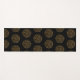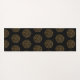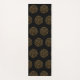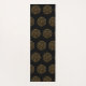 Dramático color negro y oro intrincado triple nudo celta girando mandala. Espirales eternas y nudos de trinidad en oro sobre fondo negro