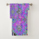 Este colorido juego de toallas de baño floral cuenta con un Aqua Trippy Resumen, Lime Green y Purple Dahlia Bloom con acentos rosa, Naranja, azul y negro. El resultado es un cuadro colorido, dramático, atrevido y florido que te encantará.