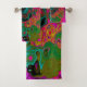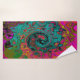 Esta pintura de aceite digital original de My Rubio Garden presenta un batido líquido retro trapequeño turquesa con acentos magenta, rosa caliente, Naranja, morado, Verde azulado, verde, dorado y negro. El resultado es un diseño colorido, trippy, groovy y abstracto que te encantará.