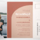 Minimalista pero sorprendente: adoptar este diseño tipográfico ligeramente retro y elegante para su papelería boda, con un diseño de arco moderno y colores de terracota y naranja quemado. Personalizable completo de texto, colores y fondos. Todo en uno: invitación de boda + detalles de boda + postal RSVP + foto de pareja.