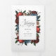 Este diseño de invitación a boda triple combina tu invitación con las instrucciones RSVP y cuenta con una foto de la novia y el novio para personalizar aún más el diseño. La portada de esta invitación tiene un lujoso marco floral que rodea su texto. Este diseño triple se abre al texto de la invitación a la izquierda, a la foto en el centro y a las instrucciones de recepción y RSVP a la derecha. Tener la invitación y RSVP en un solo producto es un ahorro de tiempo y dinero a medida que planifica a su boda. Personalice el texto con la redacción deseada y cargue la foto deseada en lugar de la foto de muestra mostrada. Los elementos florales de este diseño incluyen rosas, peonías y otros tallos mixtos en tonos rojos, burdeos, rosas, azules y verdes. Una vez que edite el texto mostrado en la plantilla de diseño, puede elegir "personalizar más adelante" para cambiar el tipo de letra o realizar cambios adicionales en el texto. El esquema de colores de esta invitación funciona bien para los bodas en cualquier temporada del año. Las hermosas obras de arte utilizadas en este diseño son de www.createthecut.com.