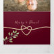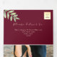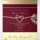 Esta elegante invitación de boda de tres solapas presenta un rico diseño de gradiente de color burdeos y dorado con acentos botánicos frondosos y un detalle de corazón romántico. El diseño todo en uno incluye espacio para los detalles de la boda, RSVP y selecciones de comidas para invitados, lo que lo convierte en una opción práctica y hermosa y ecológica. Tenga en cuenta: esta invitación de tres solapas requiere un sobre separado para enviar por correo. Recomendamos usar un sobre estándar A9 (5,75" x 8,75") para un mejor ajuste.