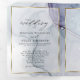 Salpicadura etérea de manchas de tinta de alcohol en tonos de azul océano, verde azulado y rico púrpura amatista, cada sección resaltada con una superposición transparente con marco de oro blanco, en el centro delantero está su foto acentuada con un doble marco dorado y detrás de la superposición blanca transparente para un atractivo esotérico. Dentro de la cubierta hay una segunda foto de su elección. La invitación de boda está en el centro y la tarjeta de respuesta desmontable está en la última sección. Esta invitación está diseñada para ser enviada por correo tal como está doblada sin sobre. Este hermoso diseño abstracto moderno es perfecto para una invitación de boda todo en uno que incluye una tarjeta de respuesta con opción de comida pre-dirigida y desmontable para que sus invitados puedan enviarla fácilmente de vuelta. Una impresionante invitación de boda todo en uno.