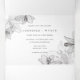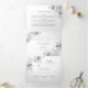 Invite a su boda con este tríplio personalizable, todo en una sola invitación a la boda, con ilustraciones en blanco y negro de lirios florales con un estilo moderno. Esta invitación a la boda es perfecta para cualquier temporada.