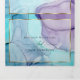 Salpicadura etérea de manchas de tinta de alcohol en tonos de aqua llamativo, violeta púrpura y lila pálido - cada sección resaltada con un overlay blanco transparente enmarcado en oro dorado, en el centro frontal está su foto acentuada con un marco doble dorado y detrás del overlay blanco transparente para un atractivo esotérico un hermoso diseño abstracto moderno para una invitación de boda todo en uno completa con opción de comida desmontable pre-direccionada rsvp para que sus invitados puedan enviar por correo fácilmente - una impresionante invitación de boda todo en uno -