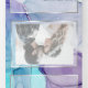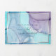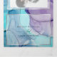 Salpicadura etérea de manchas de tinta de alcohol en tonos de aqua llamativo, violeta púrpura y lila pálido - cada sección resaltada con una superposición blanca transparente enmarcada en plata platino, en el centro delantero está su foto acentuada con un doble marco dorado y detrás de la superposición blanca transparente para un atractivo esotérico, un hermoso diseño abstracto moderno para una invitación de boda todo en uno completa con una tarjeta de respuesta desmontable pre-dirigida para la elección de comida para que sus invitados la devuelvan fácilmente por correo - una impresionante invitación de boda todo en uno -