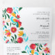 Personalizar esta hermosa invitación a bodas bilingües en dos idiomas - inglés y español ilustrado. Este diseño de inspiración mexicana de bordado floral en tonos pastel, tonos naranja, violeta y amarillo, se compone de dos espacios de invitación completos, para que todos los huéspedes puedan ver ambos idiomas, además de un espacio de tarjetas RSVP y un sitio web boda. Todo en uno. También disponible con fondo negro. Por favor, contáctame para encontrar diseños de papelería boda a medida.