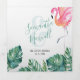 Nuevas invitaciones de bodas triples costeras en un diseño tropical de Florida. El flap exterior central muestra la foto de tu pareja. Los detalles se establecen en una tipografía de escritura a mano de moda con un tipo de letra serif tradicional. Una frontera de mi original flamencos de color agua exótica rosa y vegetación de hojas de palma de monstera encuadra la información de tu evento. Personalice cada solapa con los detalles de su boda, foto, rsvp y dirección de retorno. Perfecto para bodas tropicales en la playa o bodas de destino en los Cayos de la Florida y Key West. Para ver mi colección completa de todas las invitaciones en una boda visita www.zazzle.com/dotellabelle