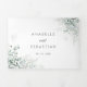 Esta minimalista y verde invitación a la boda de eucalipto es perfecta para un boda rústico. El diseño presenta unas elegantes hojas de eucalipto verde acuarela.