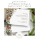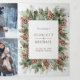 Invitación a la boda de invierno. Esta invitación a la boda de invierno incluye una vegetación acuática pintada a mano y pinecones dispuestos como un marco hermoso. El texto es marrón y el fondo es blanco.