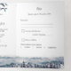 Invitación casera elegante y rústica con exquisitos paisajes de montaña y acuarela. No hay necesidad de detalles adicionales insertar tarjetas y tarjetas RSVP para añadir a tu invitación, ahorrar papel, tiempo y dinero con todo esto en una sola tarjeta de invitación. Paisaje acuático en tonos azul polvoriento, azul marino, gris y óxido. Detalles florales con flores y follaje en tonos azul polvoriento, azul marino, gris, sabio y caramelo. Posibilidad de seleccionar un personalizar más para añadir, ajustar o cambiar texto según sus necesidades. Ideal para los amantes de la naturaleza y/o de la montaña, destinos bodas del bosque. Productos de coordinación disponibles. También está disponible la misma invitación con "el Boda de" en el frente en lugar de "la celebración Boda de". Parte de nuestra colección de bodas de las Montañas Rústicas de Invierno.