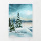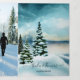 Invitación a una boda de invierno triple vuelta con dos de sus fotos favoritas y una pintura acuarela de una escena de invierno con pinos. También puede utilizar el espacio para añadir toda la información que pueda poner en una tarjeta de gabinete, como alojamiento o direcciones, etc. También puede utilizar la última página como tarjeta RSVP.