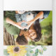 Nueva invitación a la bonito en un diseño floral y botánico. El flap exterior central muestra la foto de tu pareja. Los detalles se establecen en una tipografía de escritura caligráfica de moda con un tipo de letra serif tradicional. Una frontera de girasoles acuarelas y follaje eucaliptos enmarcan la información del evento en tonos amarillos y verdes. Personalice cada solapa con los detalles de su boda, la foto y la dirección de retorno. Todo esto en una sola invitación es perfecto para invitaciones matrimoniales de primavera, verano, otoño e invierno o bodas con temática de jardín. Para ver más suites de invitación a boda impresas con acuarela, visite www.zazzle.com/vginvites