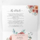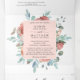 Exponga todos los detalles para su boda con todo esto en una elegante invitación floral, sin necesidad de insertar tarjetas o rsvp! Parte central que muestra los detalles de tu invitación, mientras que en la parte superior puedes añadir cualquier recepción, alojamiento, transporte, regalos, detalles del sitio web que quieras. Abajo, los huéspedes pueden cortar fácilmente la postal RSVP y depositarla en el correo. Editar información en cuadros de texto o seleccionar personalizar para realizar ajustes en la pantalla de edición. Exquisitos detalles florales y elegantes en todas las secciones con flores de color rosa oscuro, rosa polvoriento, melocotón, marfil, azul, gris y sabio. Marcos con una delicada y romántica sombra rosa rubor. Parte de nuestra colección de eventos y bodas Ethereal Rubor Peach.
