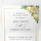 Esta invitación de boda chic presenta limones de acuarela veraniegos, flores y follaje verde. Diseñada para coincidir con nuestra colección de bodas Mediterranean Lemon. Personalízala con tus datos de manera fácil y rápida, simplemente presiona el botón personalizar para reorganizar y dar formato al estilo y ubicación del texto. (c) The Happy Cat Studio