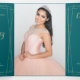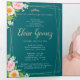 Tríptica Invitación de Quinceanera floral del tríplio verde
