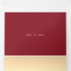 Esta elegante invitación a una boda de 3 en 1 cuenta con un atrevido fondo rojo burdeos, románticos acentos florales de oro y un panel de fotos de ancho completo, perfecto para parejas modernas que planean una celebración elegante. Con RSVP incorporado y secciones de detalles, este formato triple ofrece una solución práctica y ecológica que se siente lujosa y personal. Para el envío por correo se requiere un sobre aparte.