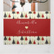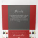 Celebre una boda invernal alegre con esta invitación tripartita 3 en 1 que presenta una paleta juguetona de rojo, dorado y gris carbón con ilustraciones festivas de árboles de Navidad. Con secciones incorporadas para los detalles de la boda, RSVP y recuento de invitados, este formato todo en uno ofrece una manera encantadora y ecológica de simplificar su suite de papelería. Tenga en cuenta: esta invitación requiere un sobre separado para enviar por correo. Recomendamos usar un sobre estándar A9 (5,75" x 8,75").